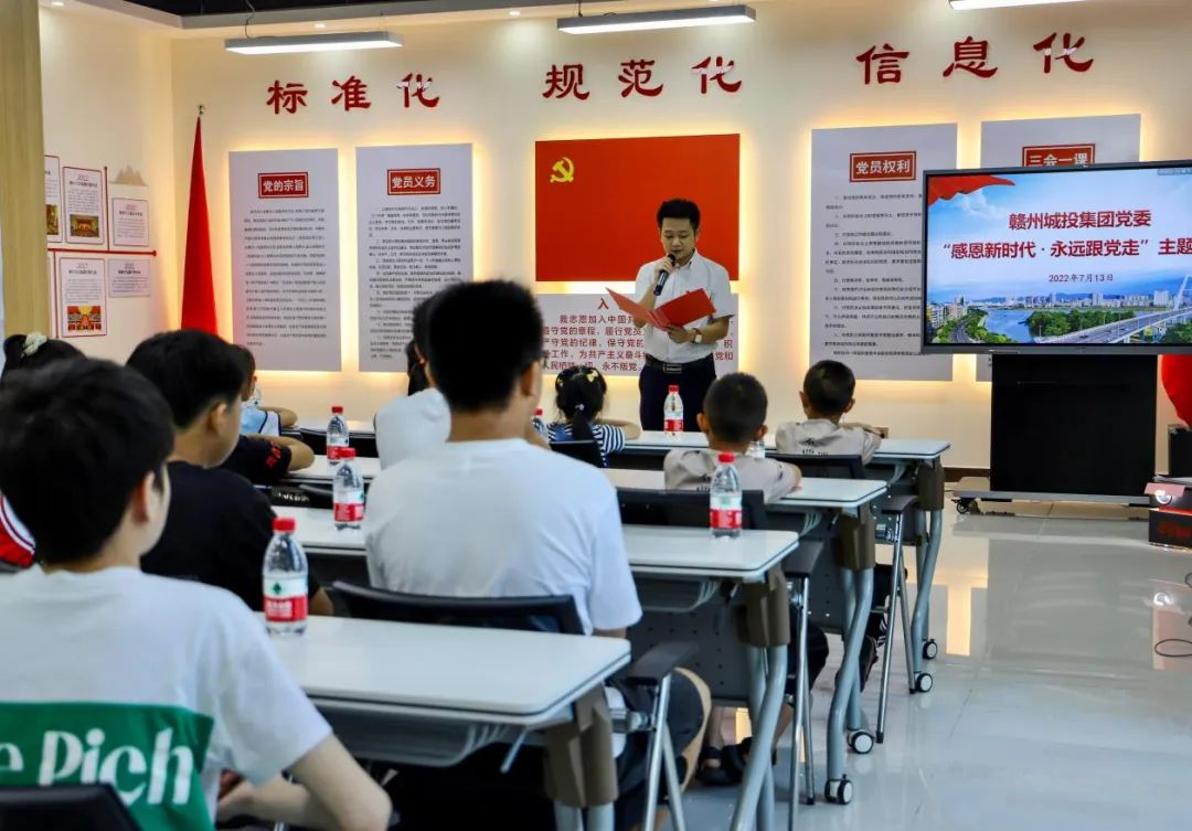 紅色七月,炎炎夏日,崇義縣一群可愛的小朋友來到贛州,留下了一次別樣暑假體驗(yàn)的美好回憶。7月13日,贛州城投集團(tuán)黨委開展助學(xué)筑夢教育幫扶主題活動,集團(tuán)領(lǐng)導(dǎo)結(jié)對幫扶的崇義縣龍勾鄉(xiāng)東山村、良田村部分學(xué)生及其他學(xué)生代表共32人應(yīng)邀參加。這次活動的主題為“感恩新時代·永遠(yuǎn)跟黨走”,分別參觀了贛州市自然博物館、贛州科技館和集團(tuán)黨性教育體驗(yàn)室,開展了紅色誦讀、講紅色故事、唱紅色歌曲、看紅色影片等活動。期間,集團(tuán)黨委書記、董事長劉曉方,黨委副書記、總經(jīng)理郭閩軍及其他在家高管與孩子們親切交流,并一起合影留念。