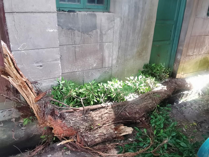 今年5月,我市大部分地區(qū)交替出現(xiàn)大風(fēng)、雷雨、暴雨等天氣,降雨量大且持續(xù)時間長。5月18日,一場雷雨過后,贛州市機關(guān)事務(wù)管理中心轄區(qū)老市委大院內(nèi),一顆200多年的古榕樹樹枝斷裂,懸掛于院內(nèi)一屋頂之上。院內(nèi)居民憂心忡忡,擔(dān)心這顆“定時炸彈”,隨時都可能掉下,砸毀房屋,危及院內(nèi)居民的人身安全。