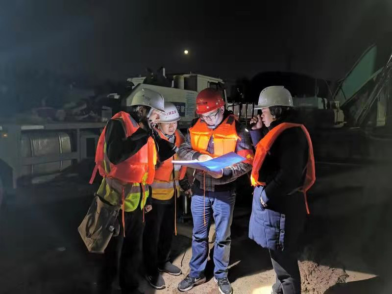在蟠龍大橋項(xiàng)目施工現(xiàn)場,工程管理公司工作人員組織參建人員推進(jìn)水上樁基以及圍堰施工堅(jiān)固等施工作業(yè)。