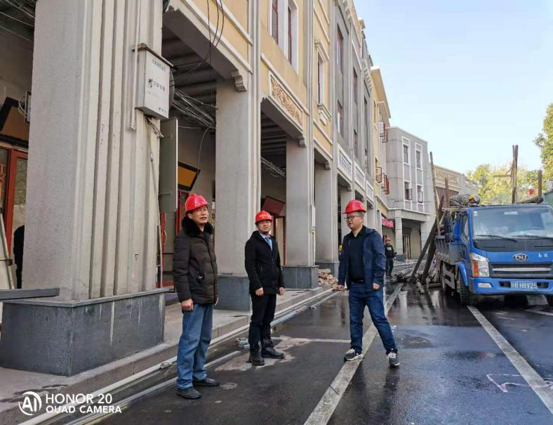 在贛南特色文化一條街項(xiàng)目現(xiàn)場,土地置業(yè)公司工作人員組織參建人員有序開展房屋加固修繕等工作。
