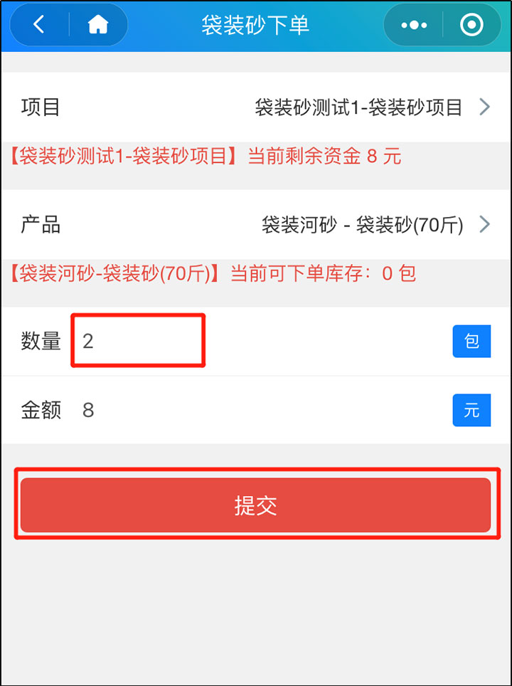 3.選擇“注冊(cè)用砂戶” 第五步:企業(yè)下單 1. 選擇“袋裝砂” 2.選擇“購砂申請(qǐng)”