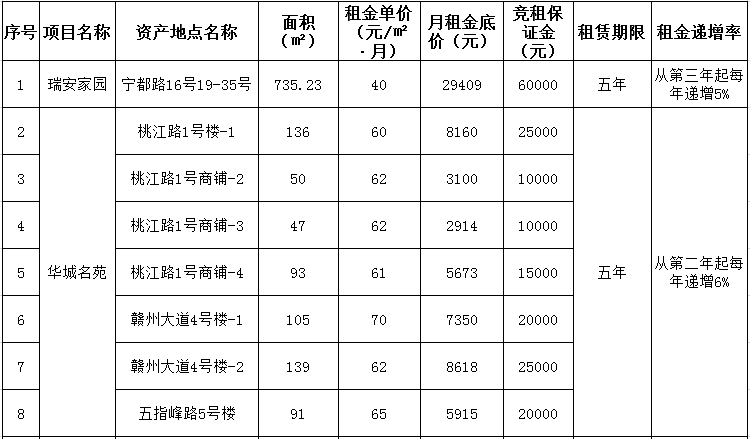贛州振興實業(yè)有限責(zé)任公司委托江西潤資拍賣有限公司,定于2020年10月22日10:00開始在贛州市公共資源交易中心(長征大道9號)進(jìn)行國有資產(chǎn)公開招租,現(xiàn)歡迎符合條件的單位或個人前來報名參加競租。