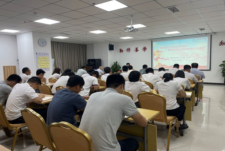王遠平從馬克思主義哲學的角度,結(jié)合自身學習黨史的心得體會,講述了馬克思主義中國化的歷史進程,梳理了馬克思主義中國化各個時期的重要成果,歸納了馬克思主義中國化的四個特征,深刻闡述了馬克思主義中國化的豐富內(nèi)涵。結(jié)合集團實際,王遠平從堅持問題導向、發(fā)揮人力資源優(yōu)勢、統(tǒng)籌兼顧等四個方面就如何推進集團市場化改革進行闡述,引導參會人員深刻領會馬克思主義中國化的經(jīng)驗以及啟示,領悟工作方法、指導工作具體實踐,為集團市場化改革做出更大貢獻。