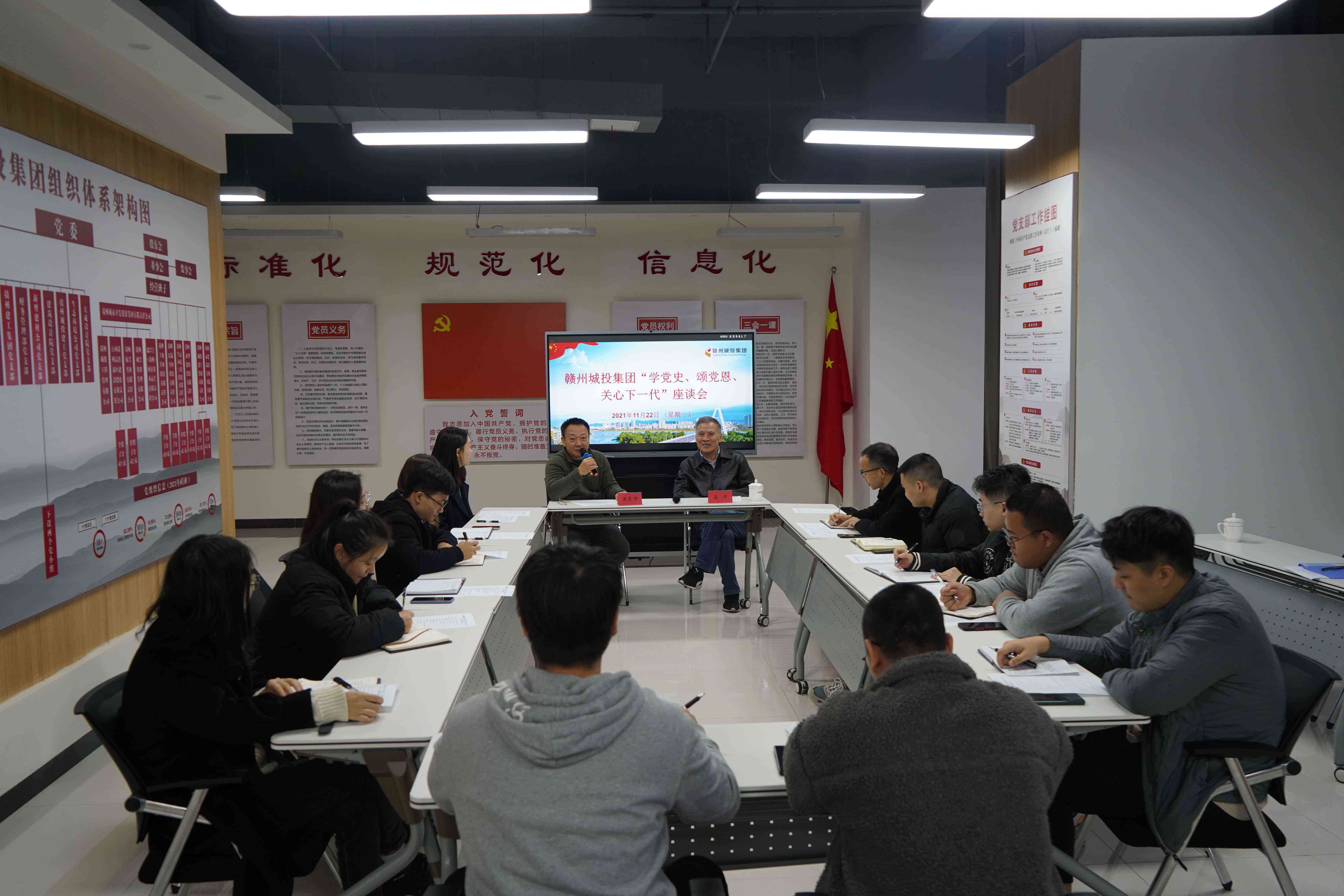 近日,贛州城投集團(tuán)關(guān)工委召開“學(xué)黨史、頌黨恩,關(guān)心下一代”座談會,集團(tuán)黨委副書記黃家偉出席座談會并講話,原集團(tuán)紀(jì)委書記、離退休老員工代表奚平,以及集團(tuán)部分青年員工代表等15人參加座談。
