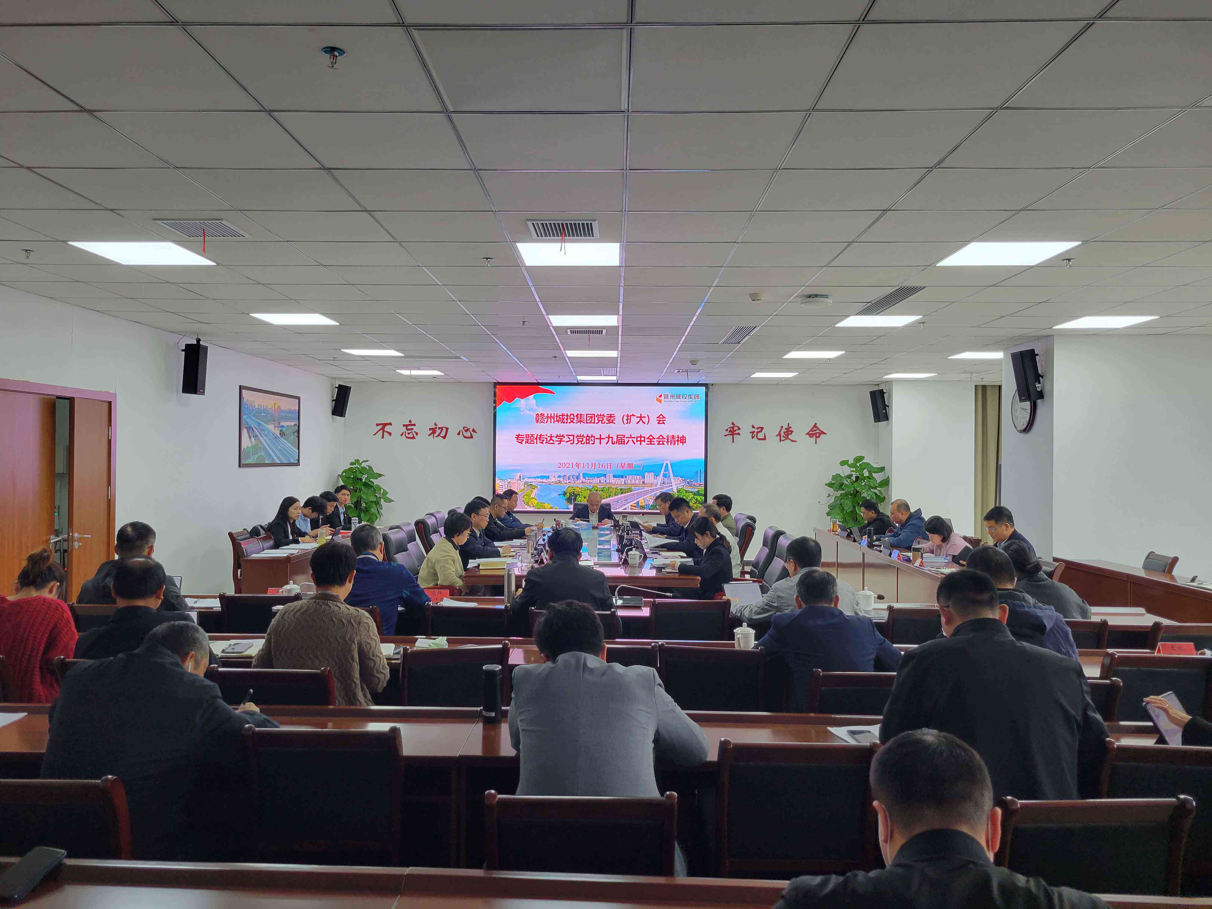 11月16日,贛州城投集團(tuán)召開黨委(擴(kuò)大)會,專題傳達(dá)學(xué)習(xí)黨的十九屆六中全會精神,研究集團(tuán)貫徹落實意見。集團(tuán)黨委書記、董事長劉曉方主持會議,集團(tuán)全體高管出席,集團(tuán)董事會秘書及各黨支部(黨總支)、部門、子公司負(fù)責(zé)人參加。